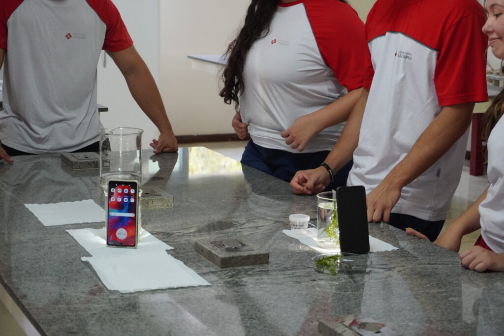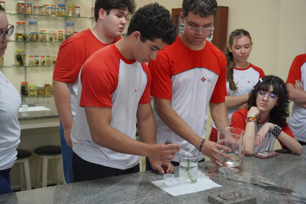 Durante o experimento, os estudantes puderam observar como a luz atua como fonte de energia para as plantas, possibilitando a transformação de dióxido de carbono e água em glicose, com a liberação de oxigênio. A vivência prática permitiu que conceitos teóricos ganhassem significado real, tornando o aprendizado mais claro e envolvente.