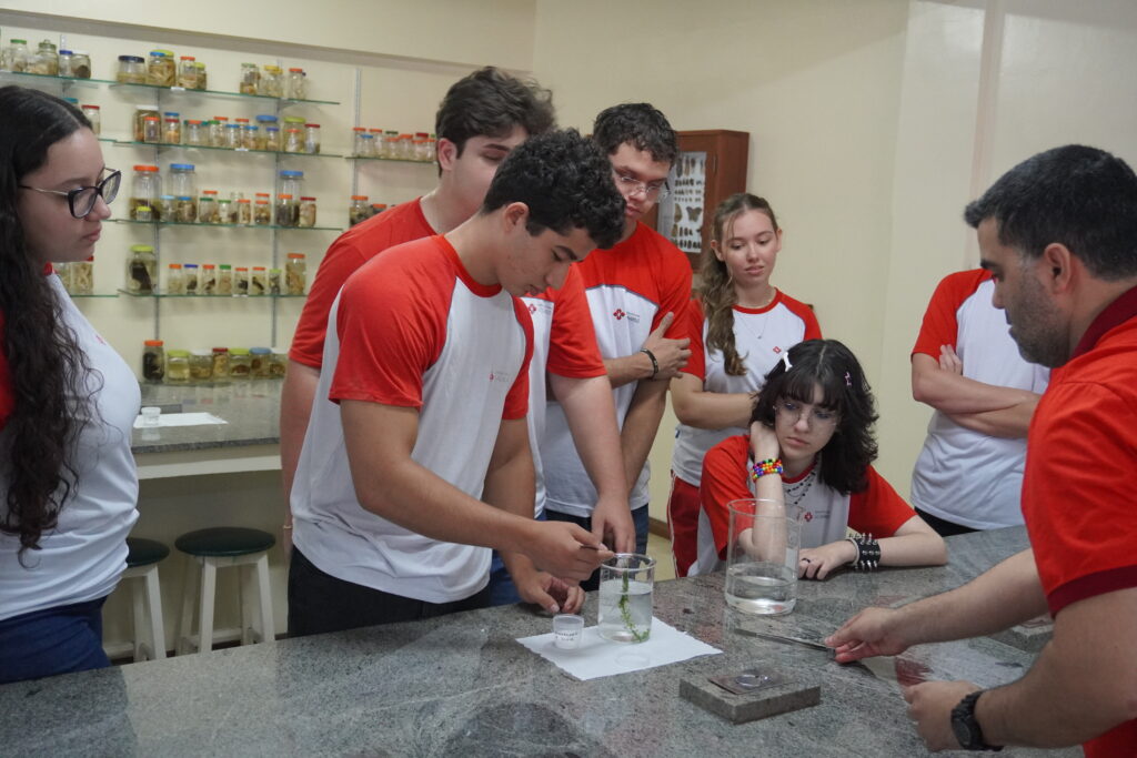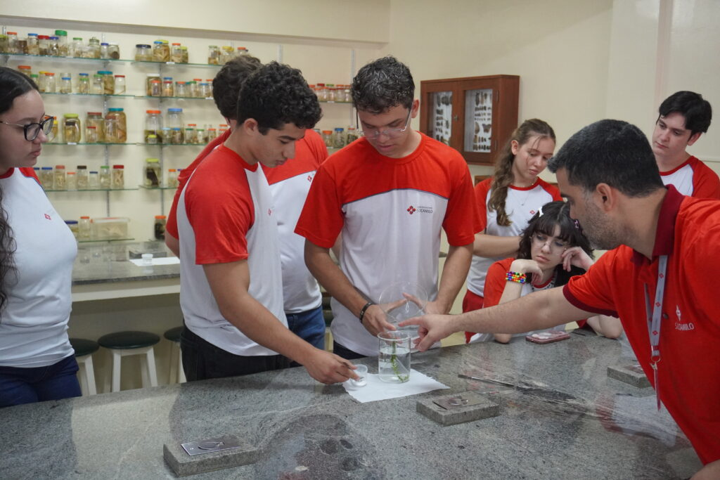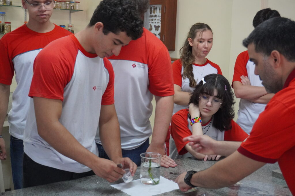Os alunos do 2º ano do Ensino Médio participaram de uma aula prática de Biologia, conduzida pelo professor Douglas, que proporcionou uma compreensão mais concreta de um dos processos essenciais para a vida: a fotossíntese.
